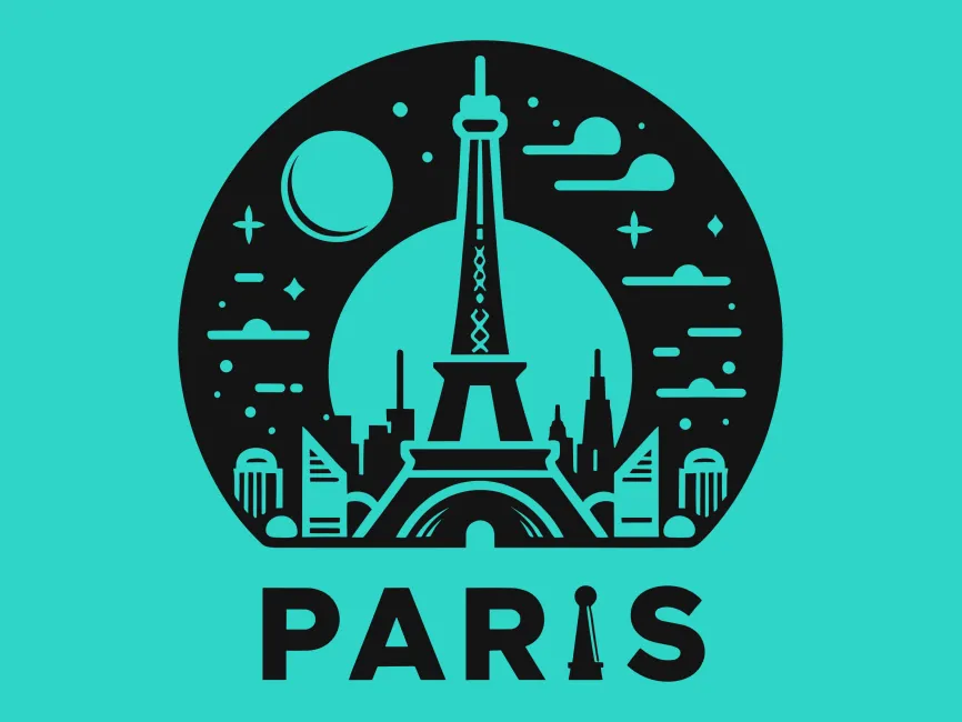 Eiffel Tower with Paris City vector logo template SVG, PNG and PDF format free Download