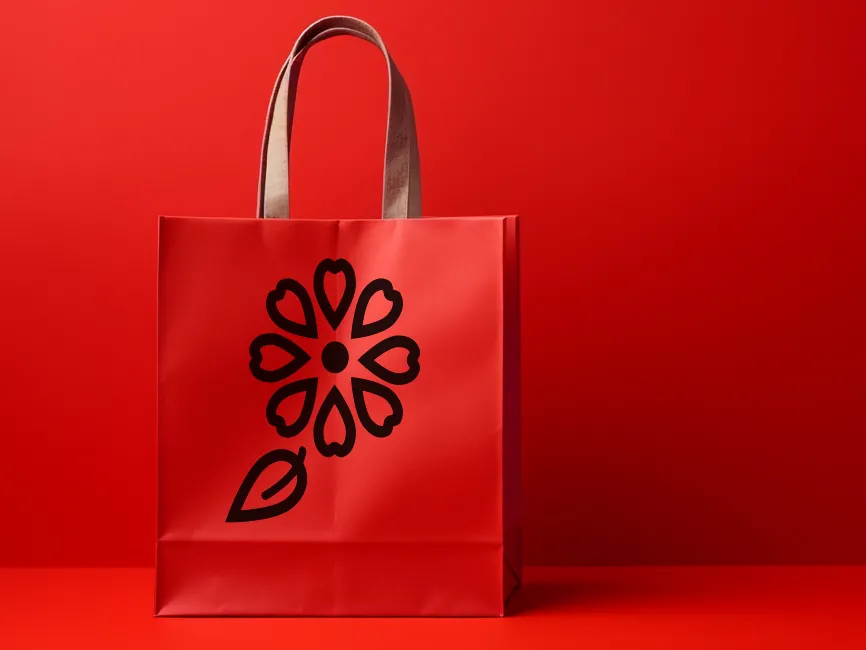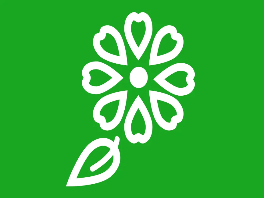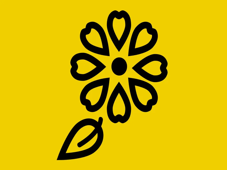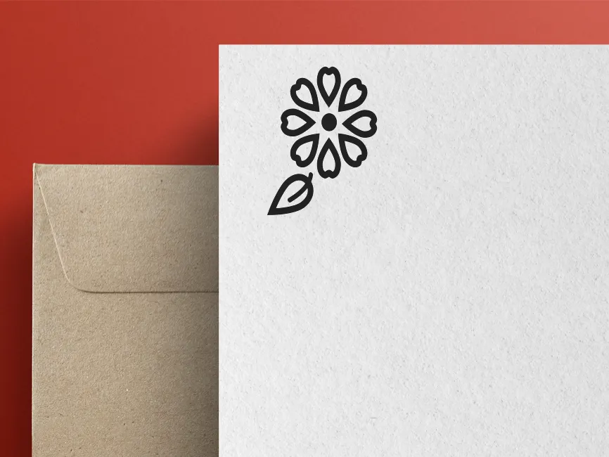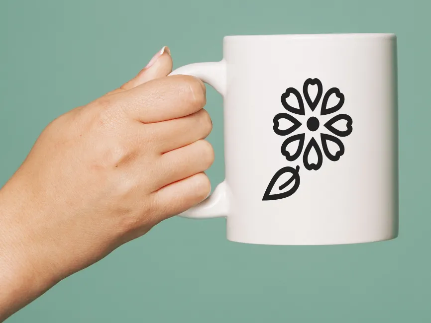 Eight Petal Black Flower with Leaf vector logo template SVG, Ai, EPS, PNG and PDF format free download