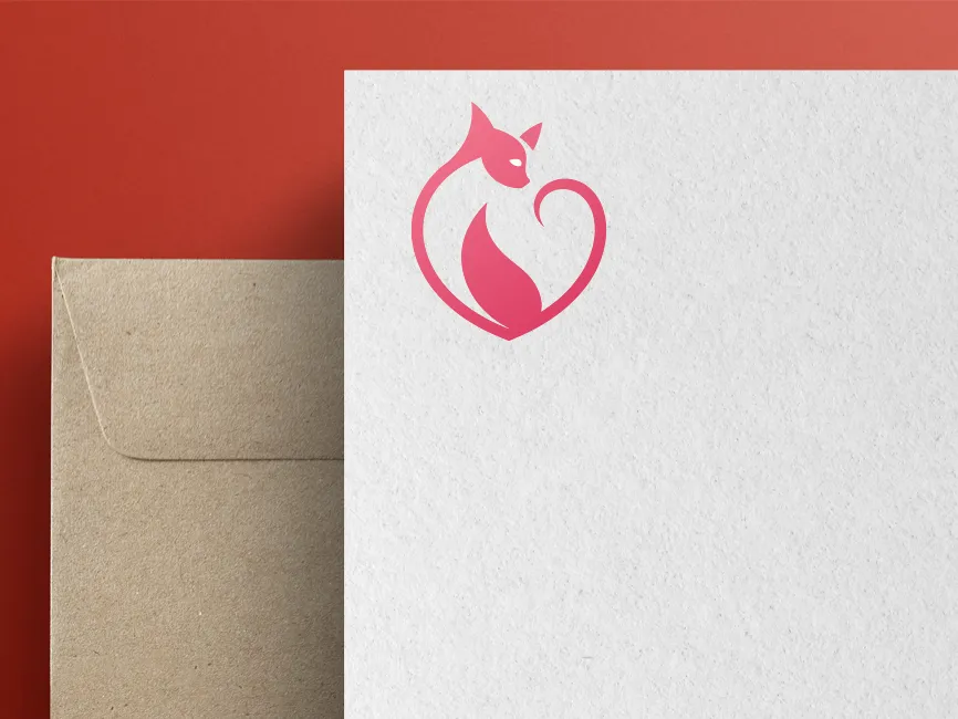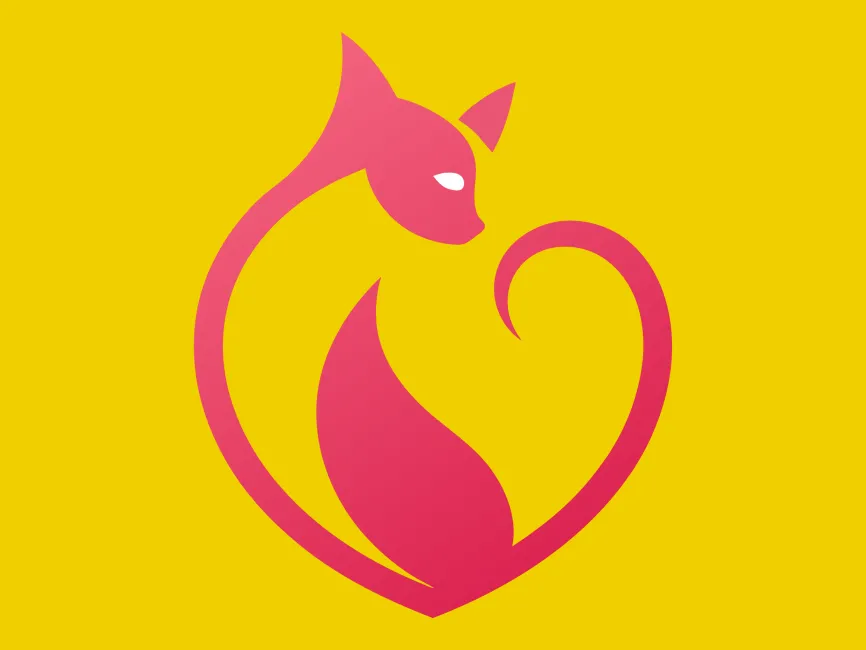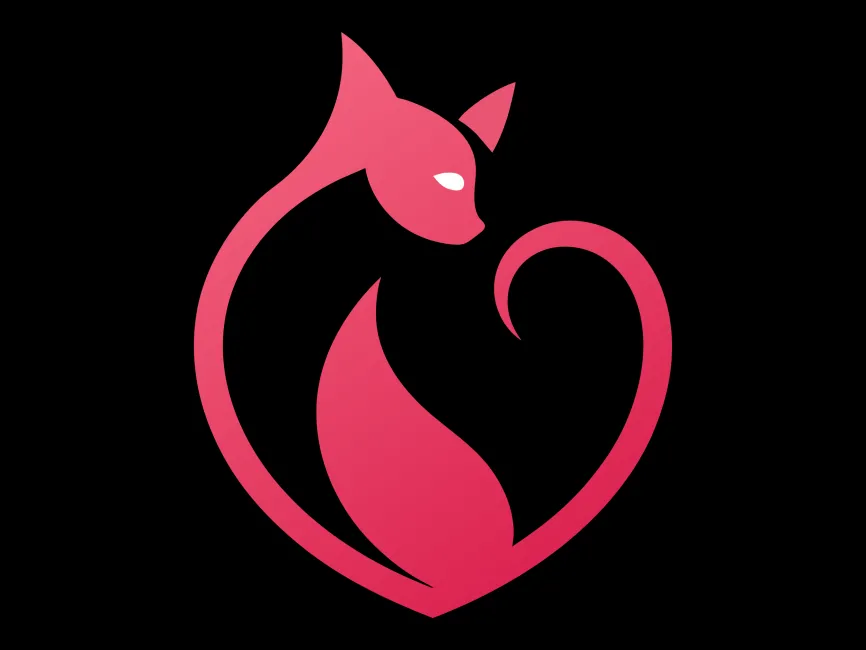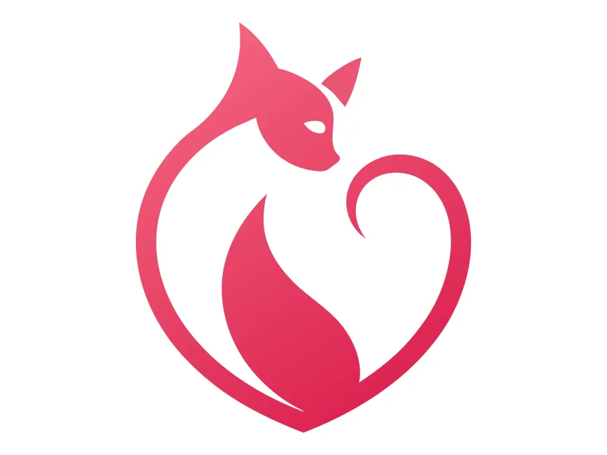 This modern cat logo seamlessly blends a graceful feline silhouette with a heart shape, symbolizing love, affection, and companionship. The smooth curves and gradient pink tones enhance its sophistication, making it a visually appealing and emotionally engaging design.