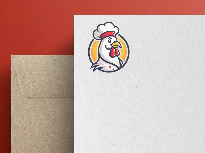 This chicken chef mascot logo presents a sleek, modern, and professional look, making it an excellent branding choice for restaurants, fast-food chains, and food-related businesses. The design features a stylized rooster wearing a chef’s hat and a red headband, symbolizing expertise, quality, and culinary excellence.