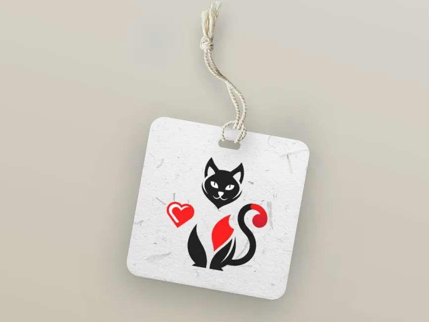 This vector logo template features a sleek black cat with a curving tail, red decorative accents, and a heart symbol, representing elegance and affection. Ideal for pet brands, artistic businesses, and luxury designs, this free logo is available in SVG, PNG, AI, and PDF formats for seamless use. The unique composition makes it a versatile branding element with a modern and sophisticated touch.