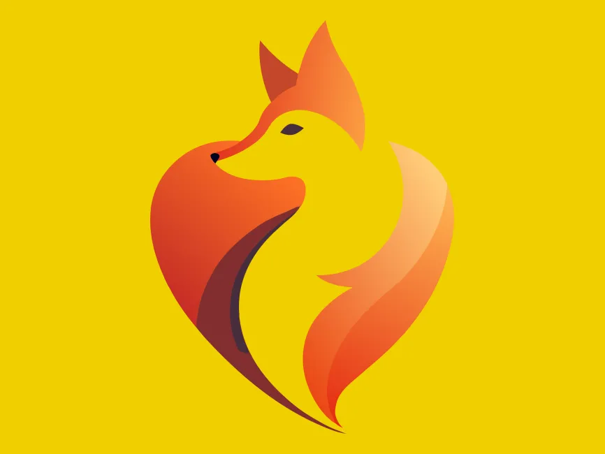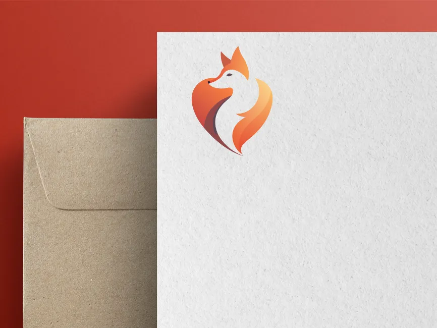 This logo template features a stylized fox illustration seamlessly integrated into a heart shape, symbolizing intelligence, agility, and warmth. The gradient orange color palette enhances its sleek and modern appeal, making it an excellent choice for various branding applications.