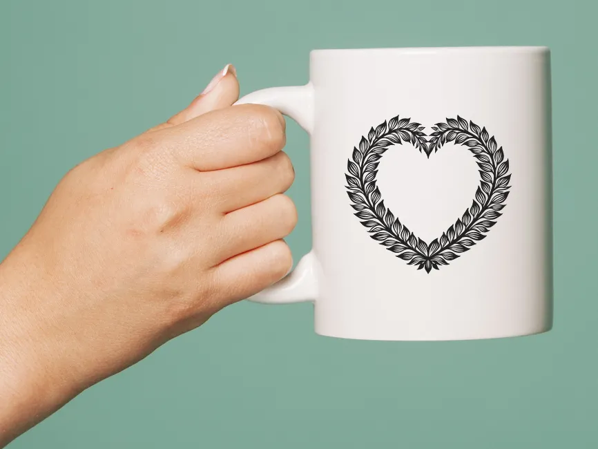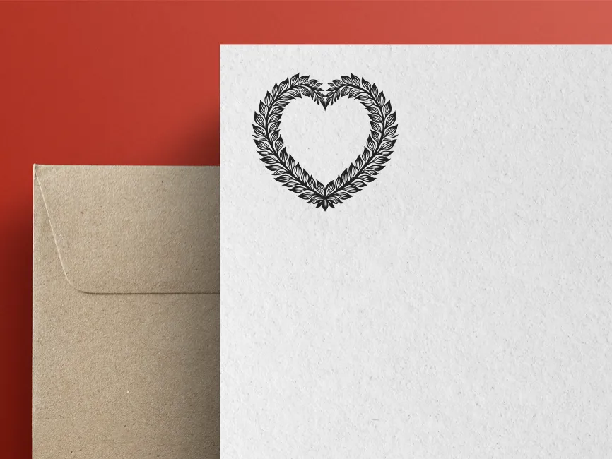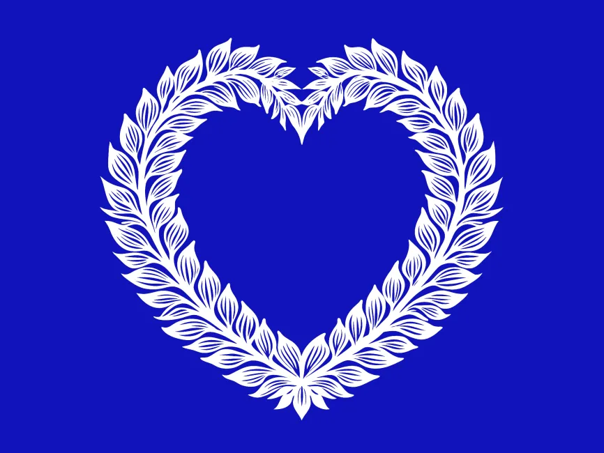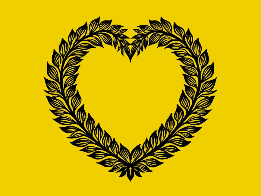 - Structure: A heart-shaped laurel wreath with intricate, overlapping leaves, creating a visually rich and harmonious design.
