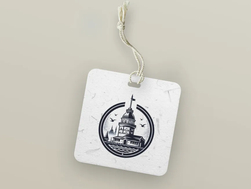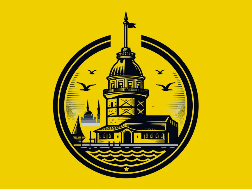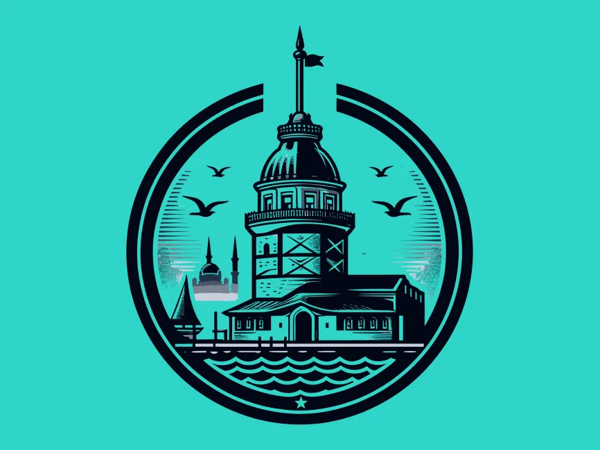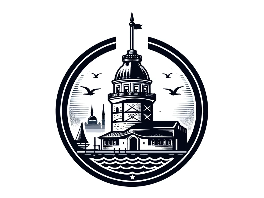 This logo template features a sophisticated monochrome illustration of the Maiden’s Tower (Kız Kulesi), one of Istanbul’s most iconic landmarks. The design is enclosed within a circular frame, reinforcing a modern and timeless aesthetic. The dark-toned palette and fine details make this vector logo a perfect choice for brands looking for a minimalist yet striking representation of Istanbul’s heritage.