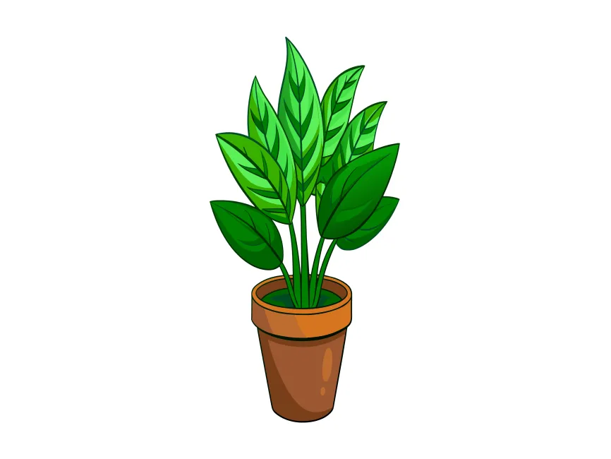 This vector design features a lush potted plant with vibrant green leaves and a rich, earthy terracotta pot. The detailed shading and highlights give this illustration a semi-realistic touch, making it perfect for eco-conscious branding, gardening projects, nature-themed artwork, and home decor graphics.
