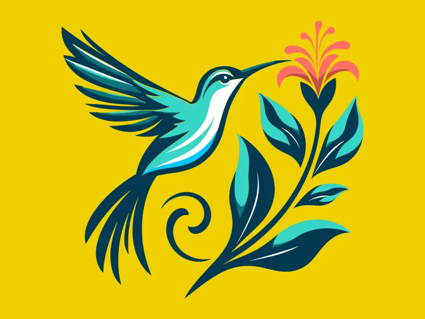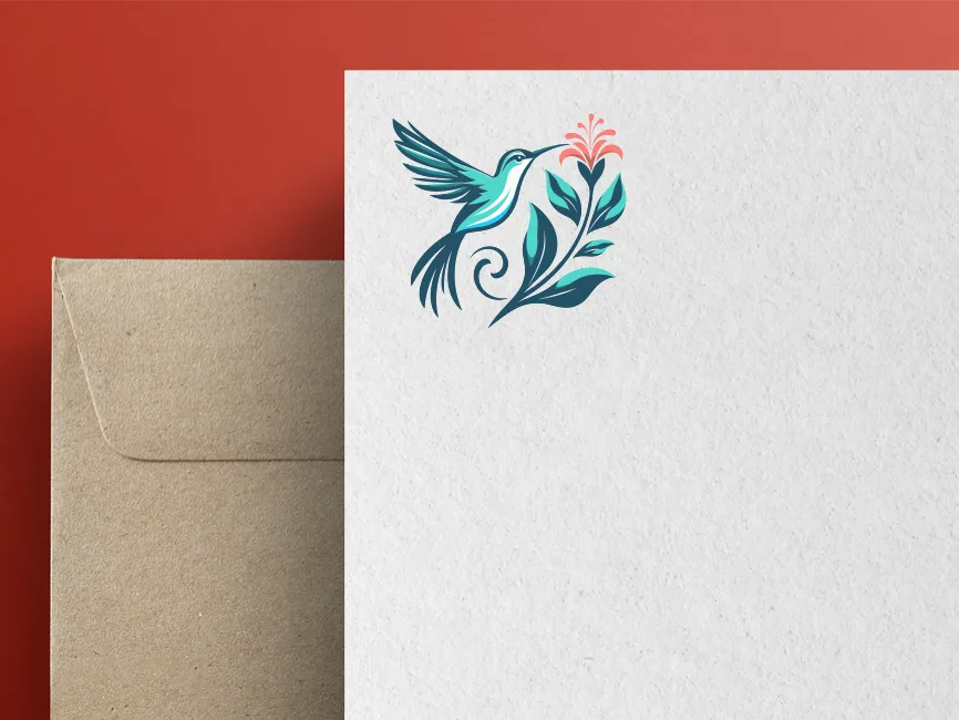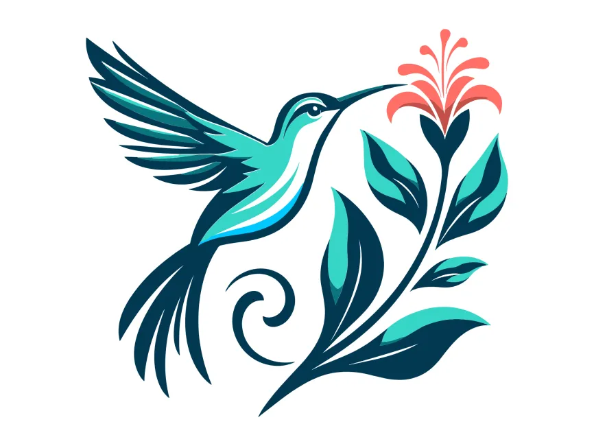 The design successfully merges abstract elegance with nature-inspired fluidity. The upward motion of the hummingbird and the open bloom symbolize transformation, optimism, and connection to nature. The curl element adds a handcrafted aesthetic, making it suitable for artisan and boutique applications.