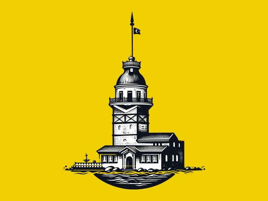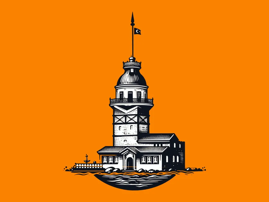 This logo template showcases the Maiden’s Tower (Kız Kulesi) in an elegant engraving-style design, emphasizing fine details and architectural beauty. The monochromatic shading and intricate line work enhance its vintage aesthetic, making it a perfect choice for heritage-focused and classic branding. The tower’s strong silhouette and the surrounding water create a balanced, historical, and sophisticated composition.
