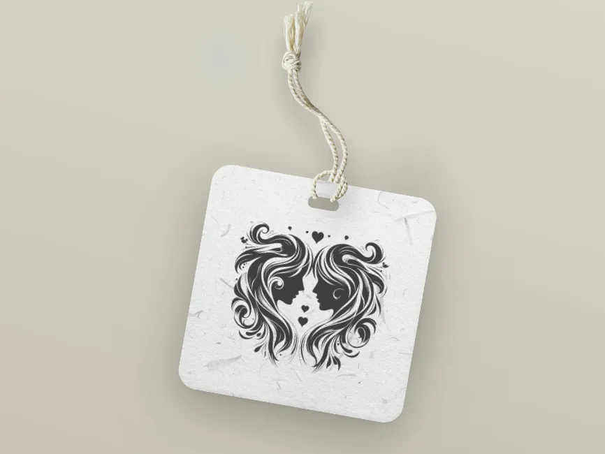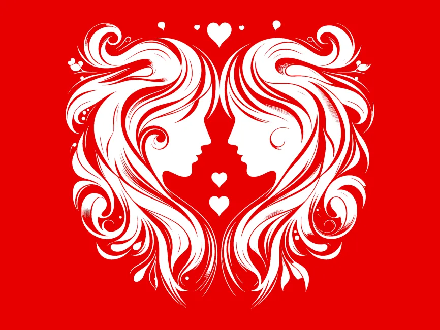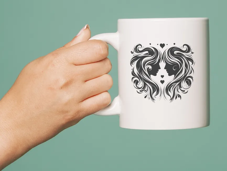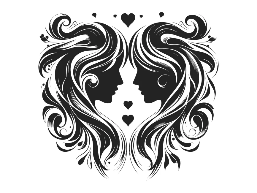 The intricate details in the waves of their hair, combined with the symmetrical composition, give this emblem a dreamy, bohemian aesthetic. This makes it ideal for modern romantic designs, tattoo concepts, and fashion-related branding.