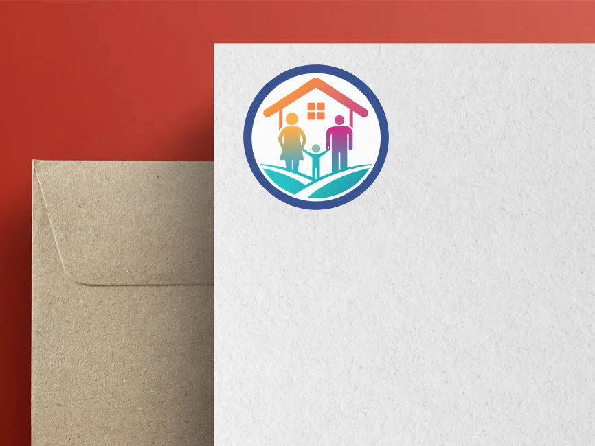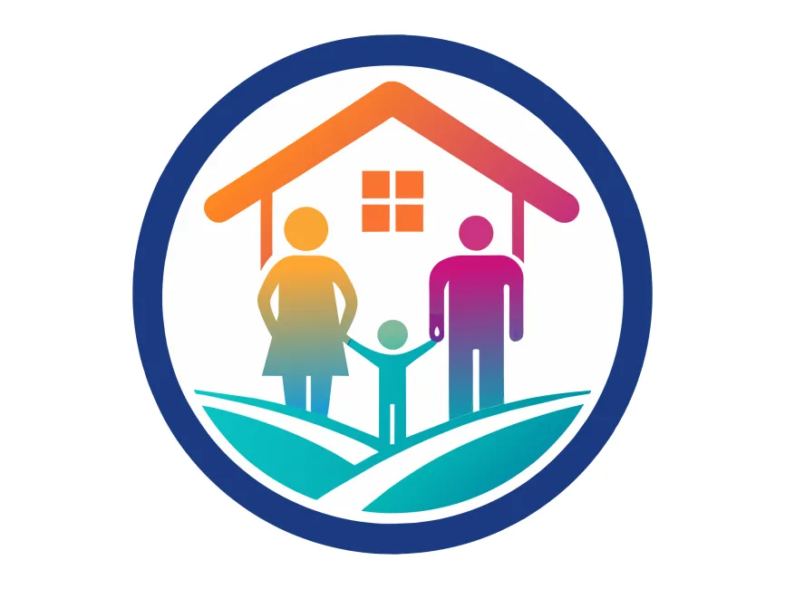 This logo template symbolizes family unity, home security, and sustainable living. The design features a house sheltering a family within a circular frame, representing protection, stability, and inclusivity. The gradient colors and eco-friendly landscape elements make this a perfect vector logo for businesses related to real estate, insurance, family services, and community development.