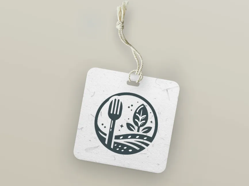 This beautifully crafted vector emblem symbolizes the farm-to-table movement, organic food, and sustainable agriculture. Featuring a fork integrated into a natural landscape, alongside a growing plant, this design embodies eco-conscious dining, fresh ingredients, and culinary sustainability.