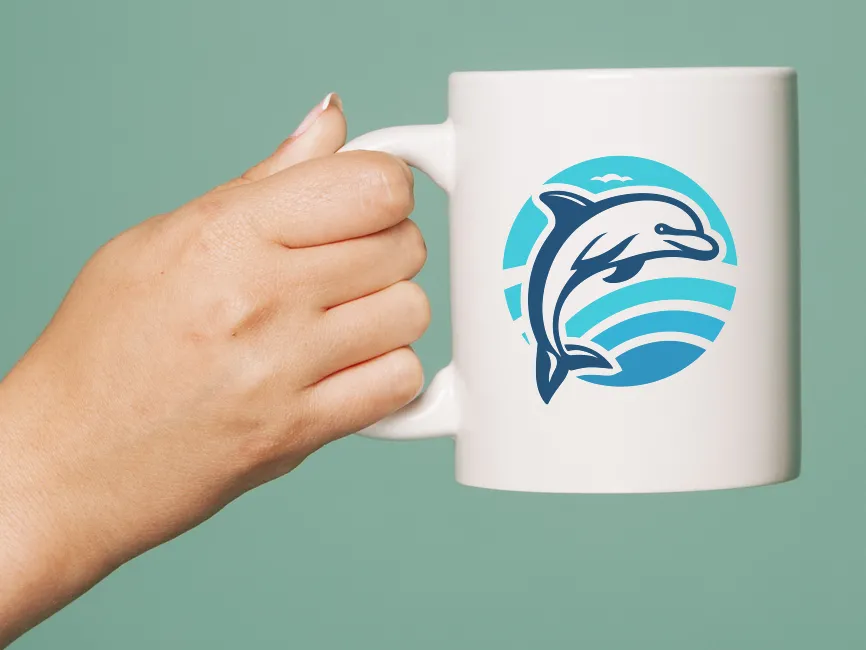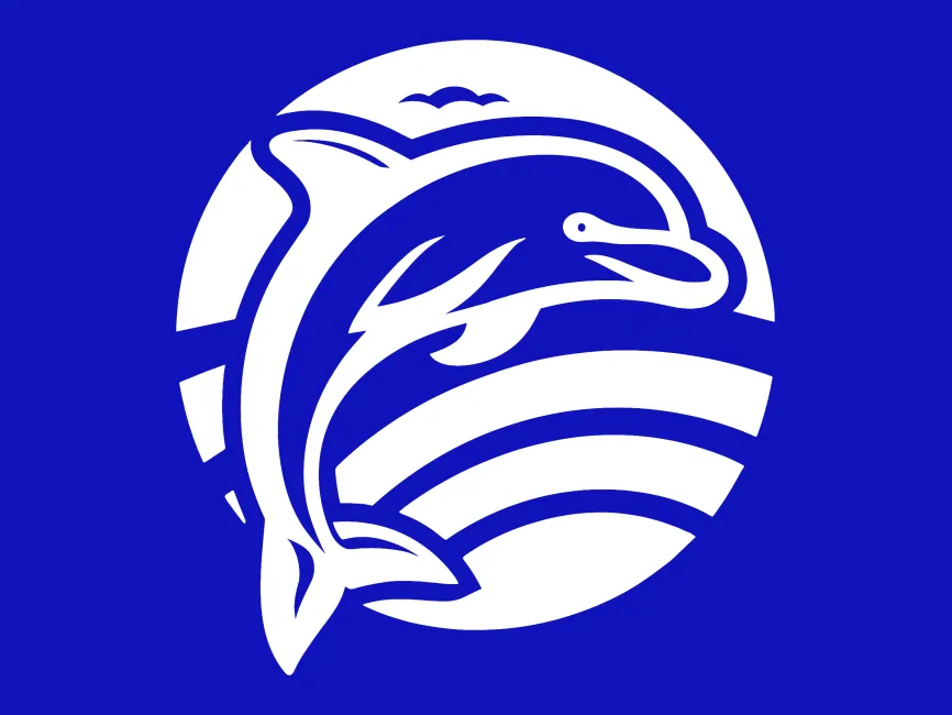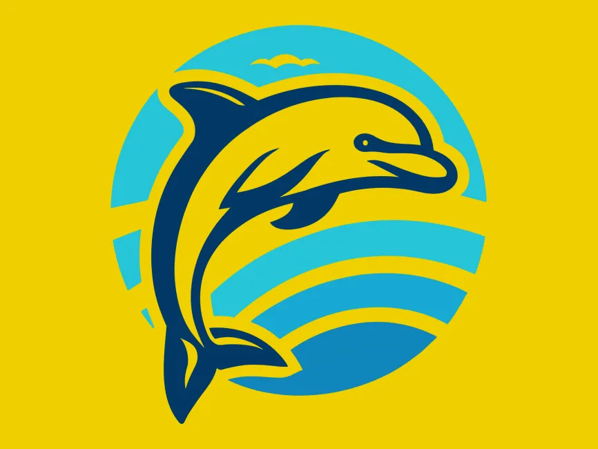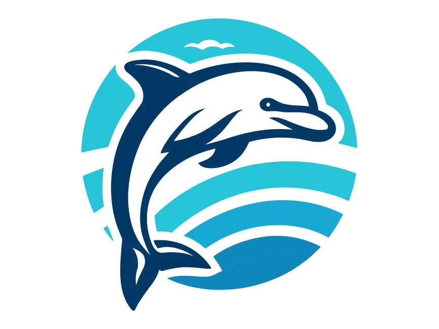 Flat Dolphin Jumping in the Waves vector logo (SVG, Ai, EPS, PNG and PDF format) Free Download