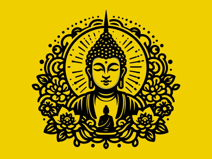 Radiant Halo: The burst of lines around the Buddha symbolizes awakening, insight, and spiritual illumination. It also anchors the composition visually for centered branding.
