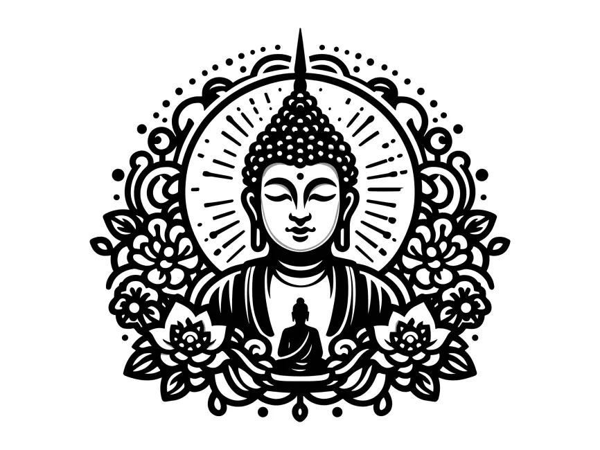 This monochromatic Buddha vector design, adorned with radiant energy and surrounded by floral mandala elements, is a visually rich and deeply symbolic representation of peace and spiritual awakening. Ideal for wellness brands and artistic expression, it blends clarity, detail, and meaning seamlessly. Download it now in SVG, PNG, AI, PDF, and EPS formats from Logowik.com and enhance your next creative work with mindfulness and elegance.