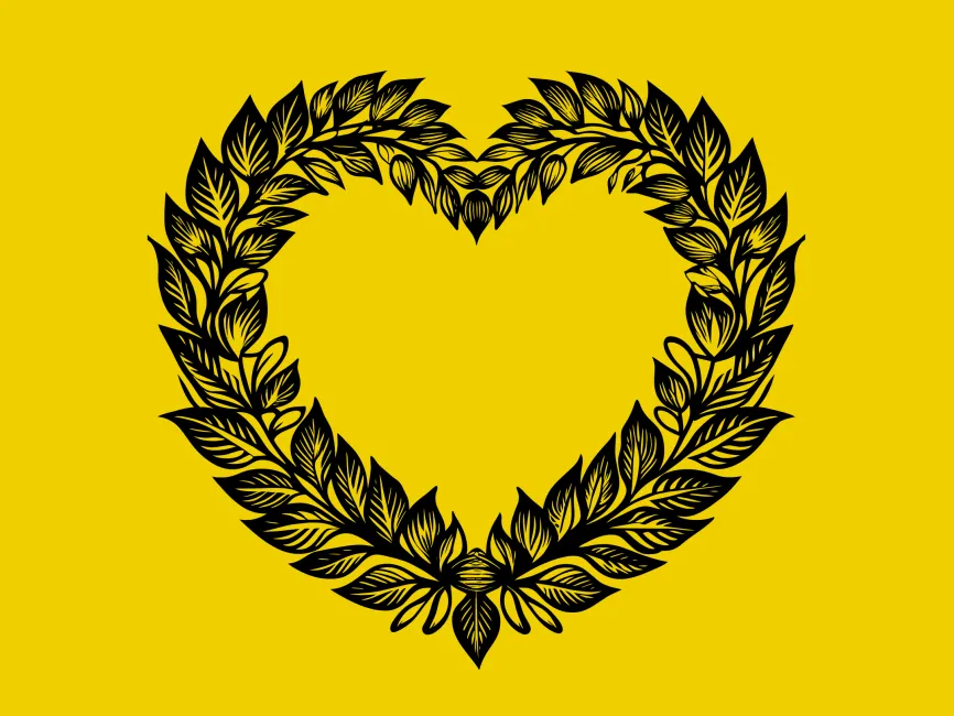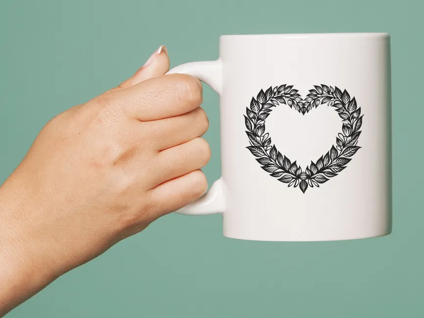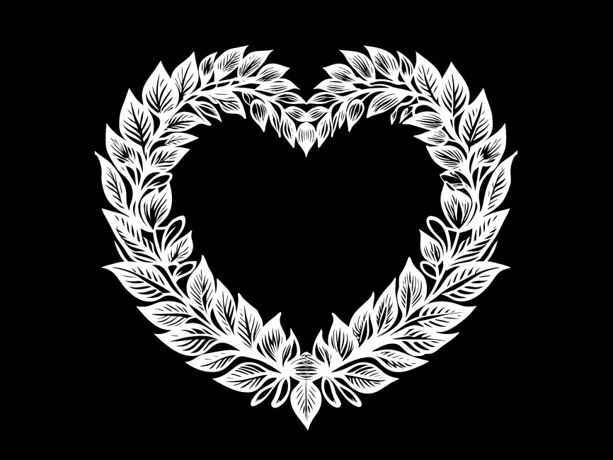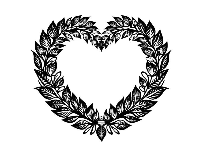 This elegant floral heart wreath combines nature-inspired elements with a romantic and decorative touch. The intricate arrangement of leaves and organic curves makes it an ideal design element for branding related to weddings, beauty, and eco-friendly businesses.
