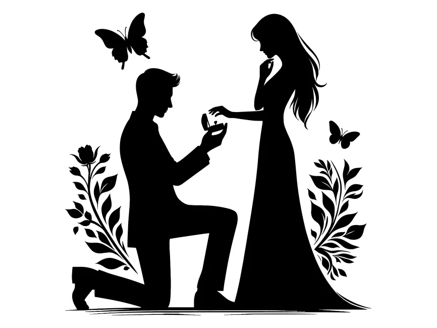 Floral Marriage Proposal Silhouette vector logo (SVG, Ai, EPS, PNG and PDF format) Free Download
