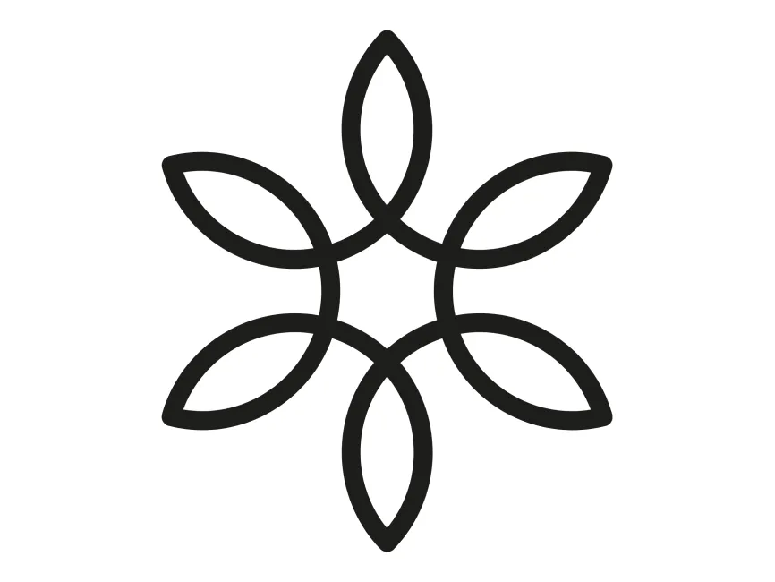 The free logo shape consists of four circular petal elements interwoven at the center, forming a flower-inspired motif. The blend of curved arcs and pointed petal shapes creates a harmonious and eye-catching balance. The contrast between open space and bold lines enhances the structure’s modern yet organic feel.