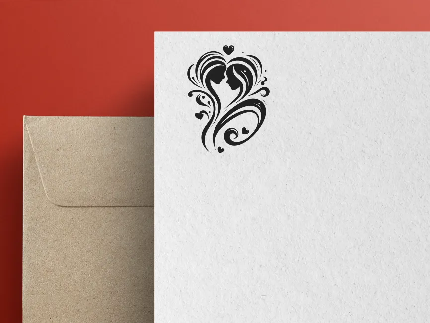 This elegant and abstract vector illustration represents two souls deeply connected in love. The flowing, curved lines intertwine gracefully, forming an artistic and symbolic representation of unity and devotion. The design’s fluid motion and heart-shaped accents evoke a sense of romance and emotional depth, making it ideal for wedding and love-themed branding, invitations, and decorative artwork.
