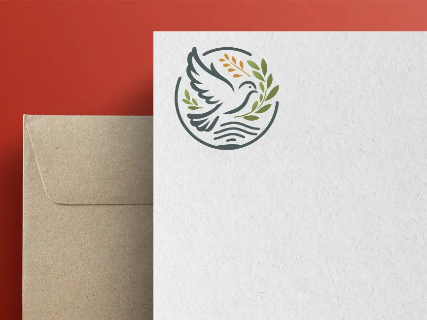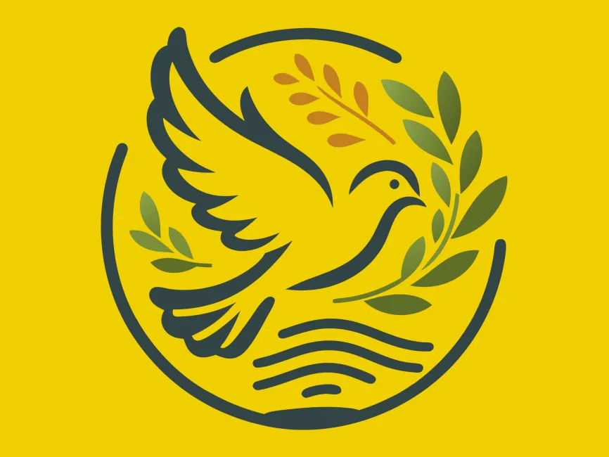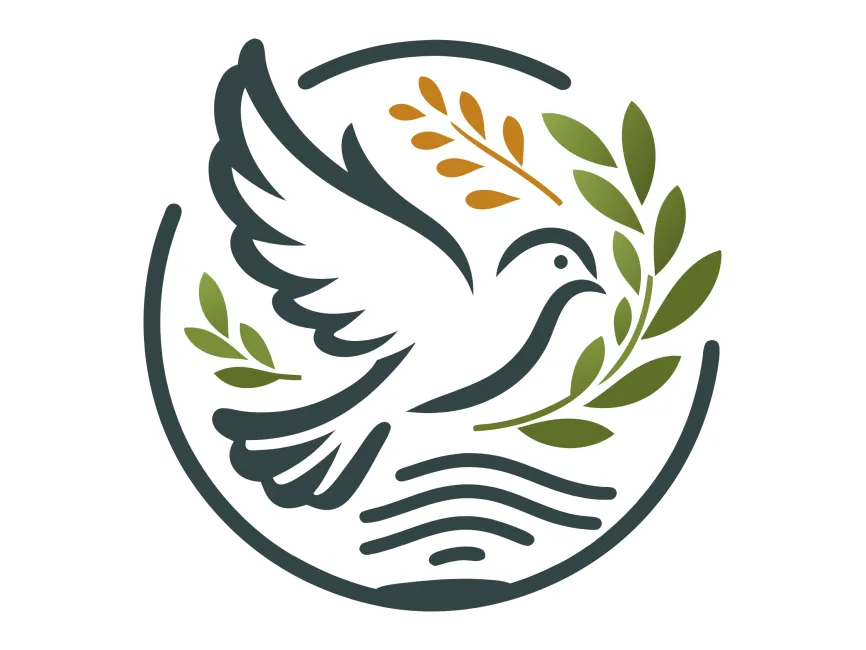 Download Flying Pigeon with Green Olive Branch Wreath in Circle logotype PDF vector and SVG logo Vector Format and PNG Transparent Format.