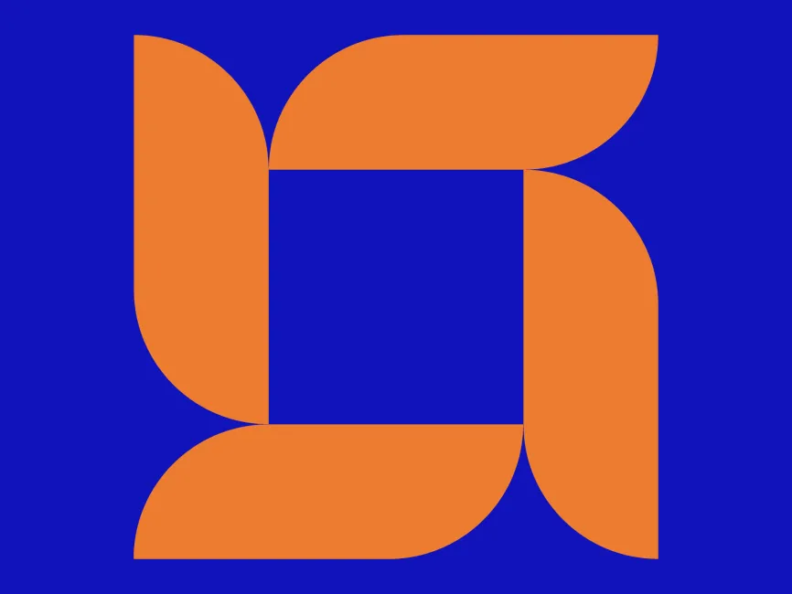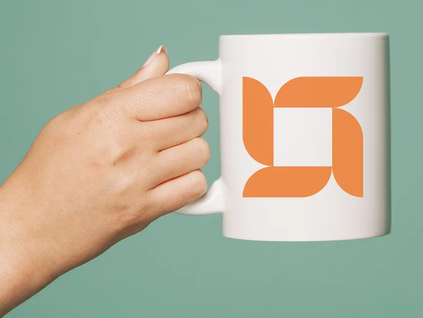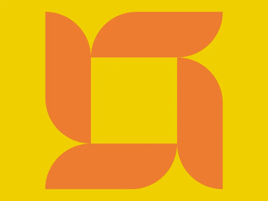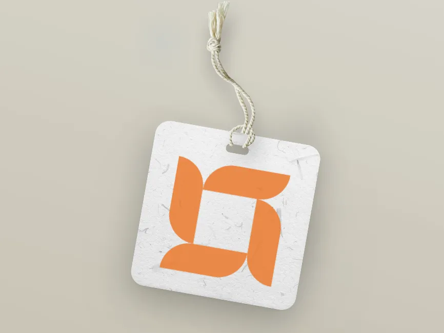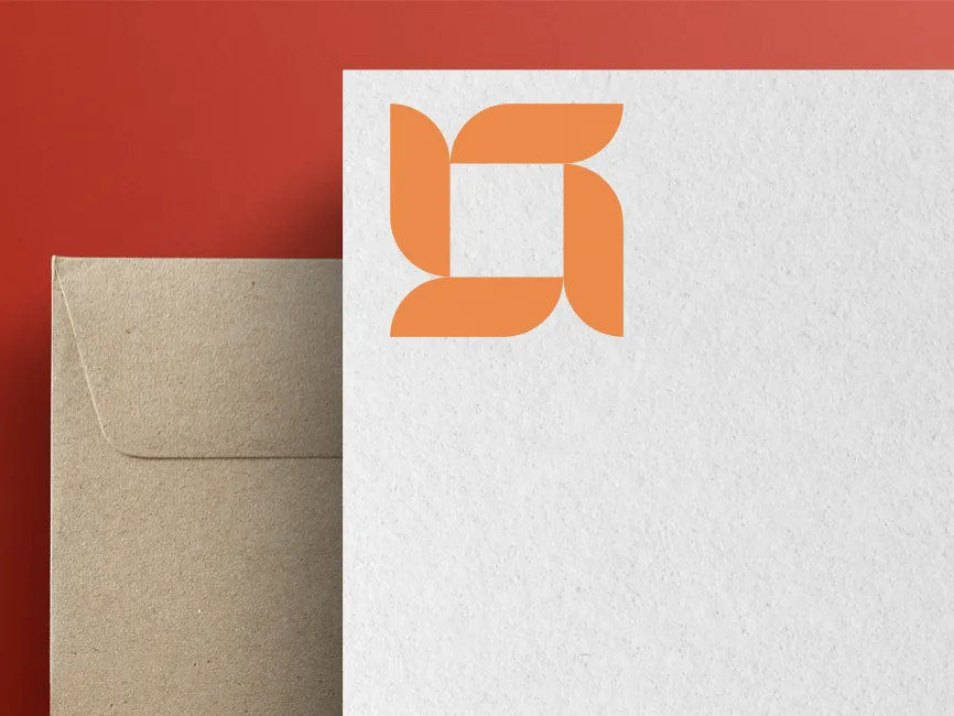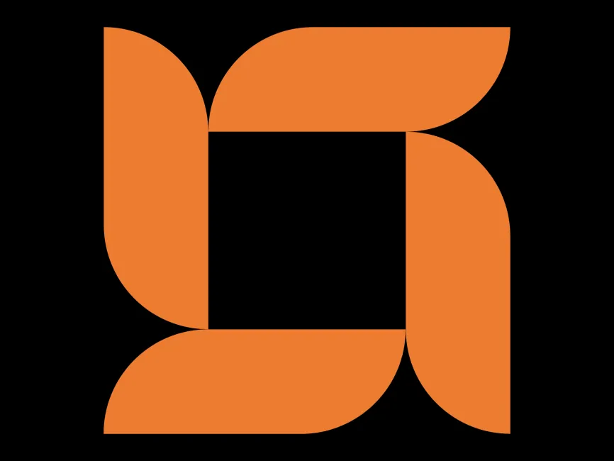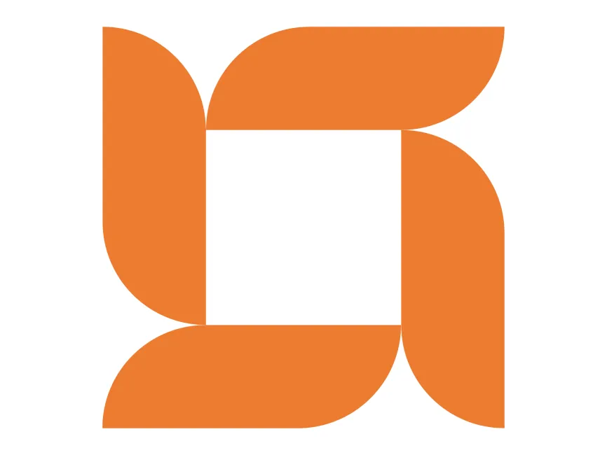 This logo consists of a square center surrounded by four curved, petal-like shapes, creating a dynamic and balanced composition. The design conveys a sense of movement, rotation, and harmony while maintaining a structured core. The orange color adds an element of energy, warmth, and creativity. The shape resembles a stylized wind turbine, a flower, or a rotating mechanism, making it versatile for various industries.