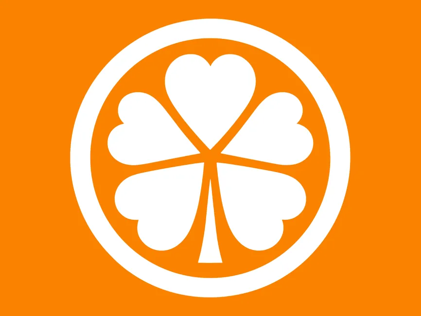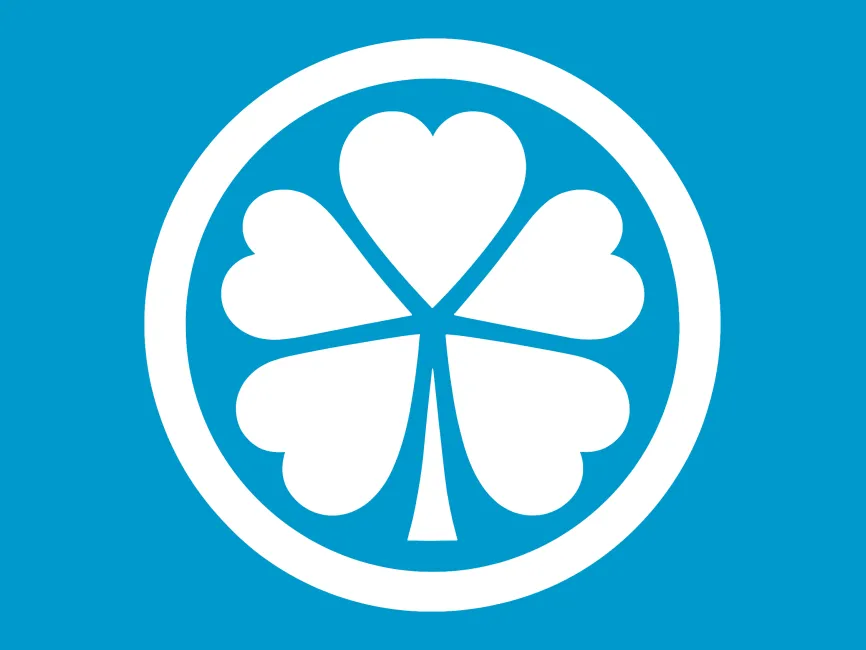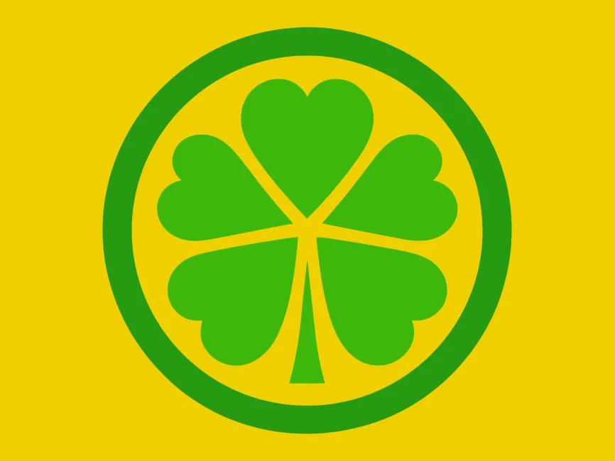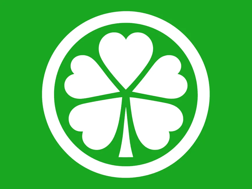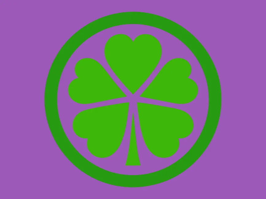 Shape and Structure: The logo features a stylized four-leaf clover. The four leaves are arranged symmetrically, each leaf being a heart-shaped petal pointing outwards from the center.