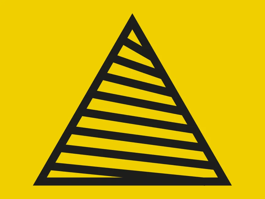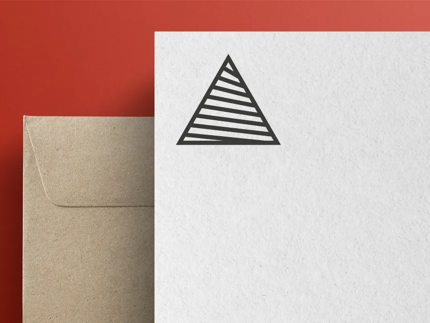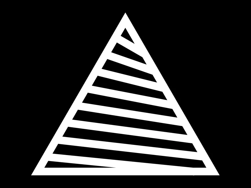 This striking vector design features a triangular pyramid structure with fragmented horizontal layers, creating a dynamic and futuristic aesthetic. The sharp edges and asymmetrical breaks add a sense of movement and innovation, making it a great design element for modern branding, corporate identity, and technology-related logos.