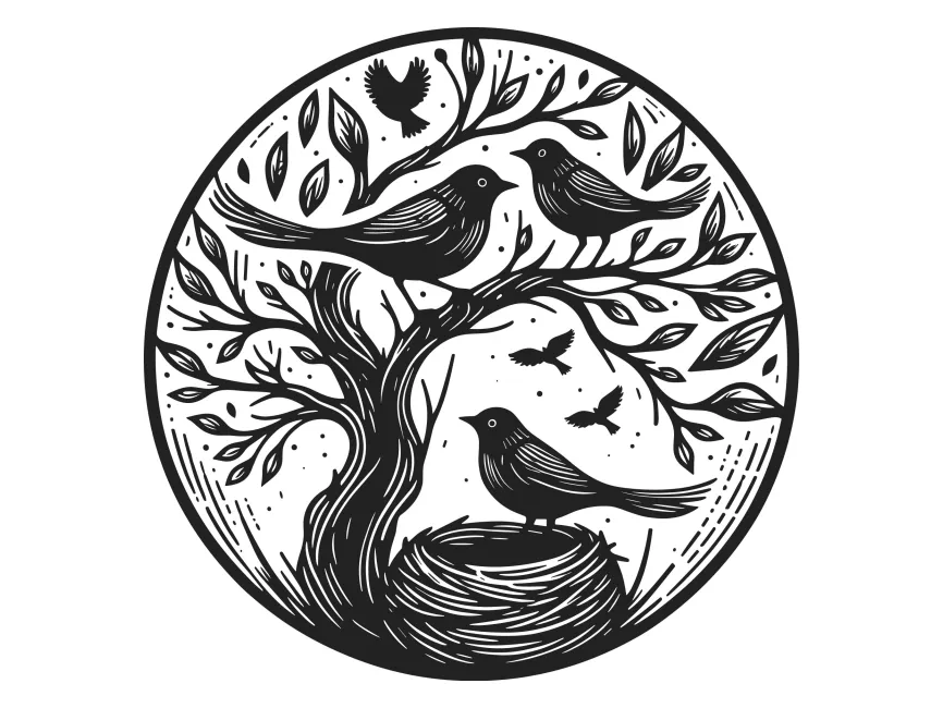 Download Free SVG Bird Nest on Tree in Circle vector logo in SVG, PDF, CDR, EPS, Ai and PNG format from Logowik.com