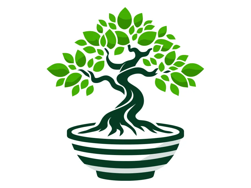 Download Free Vector Bonsai Tree with Green Leaves in a Pot vector logo in SVG, PDF, CDR, EPS, Ai and PNG format from Logowik.com