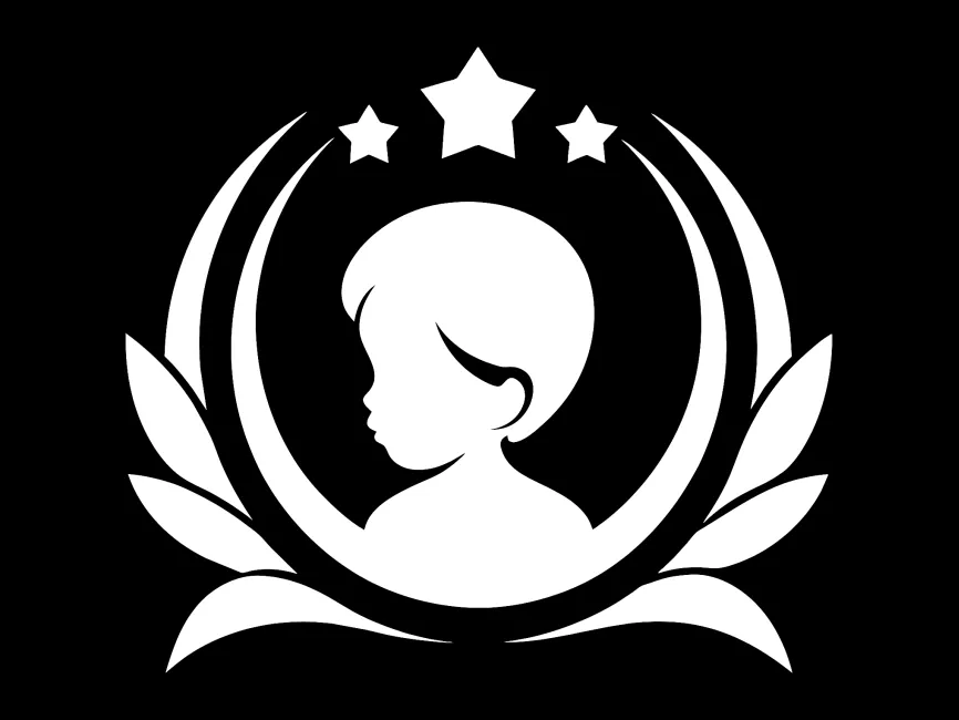 This elegant black-and-white logo template features the side profile of a young child—framed within a circular motif of laurel leaves and arched crescents. Three stars sit above the child’s head, symbolizing achievement, potential, and aspiration. The child is looking to the left, suggesting curiosity, reflection, and growth.
