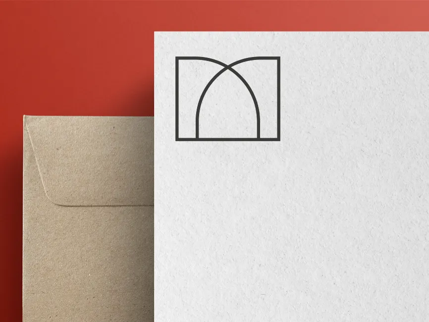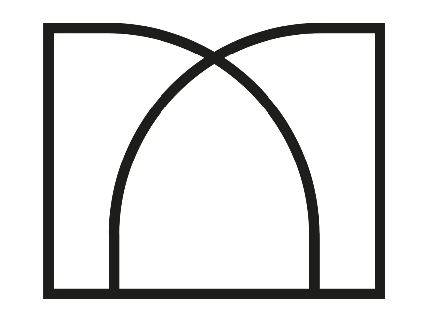 The shape consists of a strong rectangular frame with intersecting curves that create a dynamic contrast between straight and rounded edges. The arches resemble architectural elements such as Gothic windows or modern minimalist structures, adding a sense of stability and elegance. The black outline gives the design a contemporary and high-contrast look, making it adaptable for both digital and print mediums.