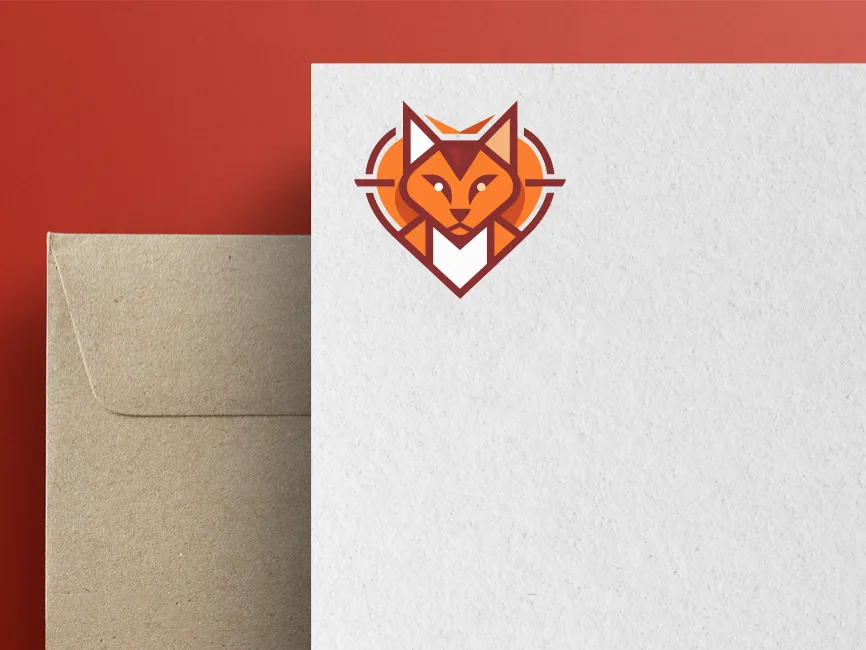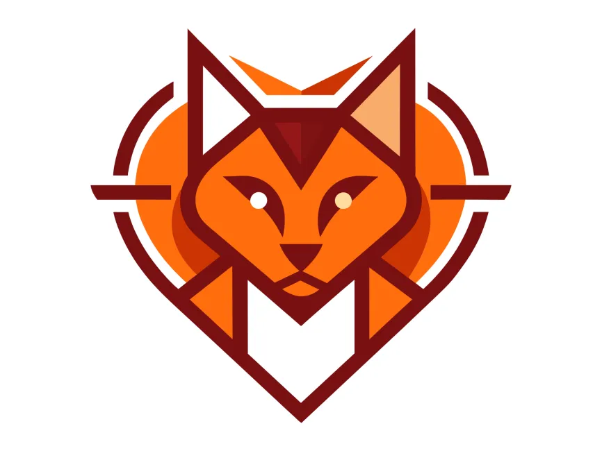 This modern cat logo blends a geometric feline design with a heart-shaped frame, symbolizing elegance, affection, and intelligence. The combination of sharp, angular lines and a warm orange-maroon color palette creates a sleek and bold visual identity. The symmetrical design enhances its versatility, making it suitable for various industries.