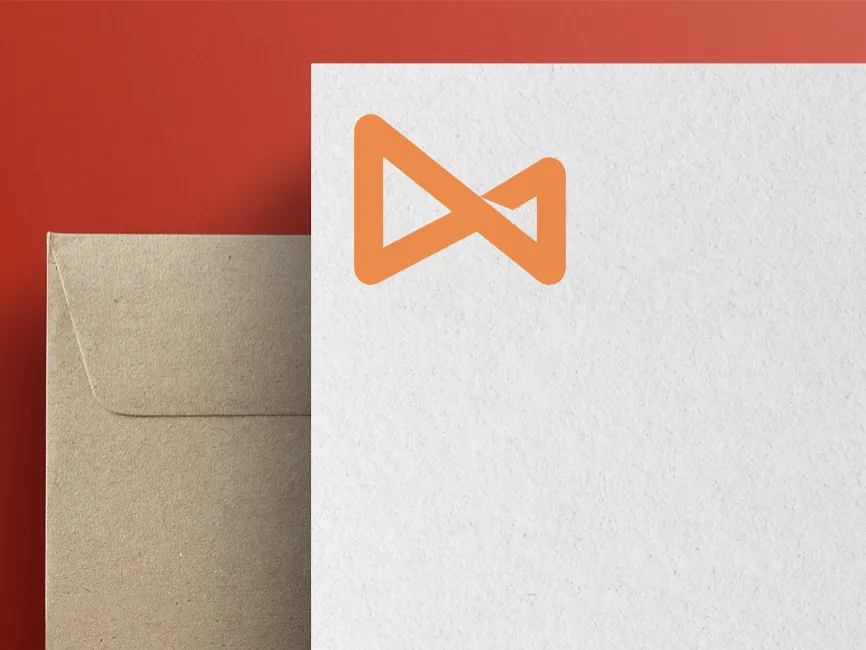 This logo template features a modern, abstract design that resembles the letter "M" with a dynamic ribbon-like structure. The bold, angular lines and geometric style give it a contemporary and professional look. The orange color conveys energy, creativity, and innovation, making it suitable for a wide range of industries.