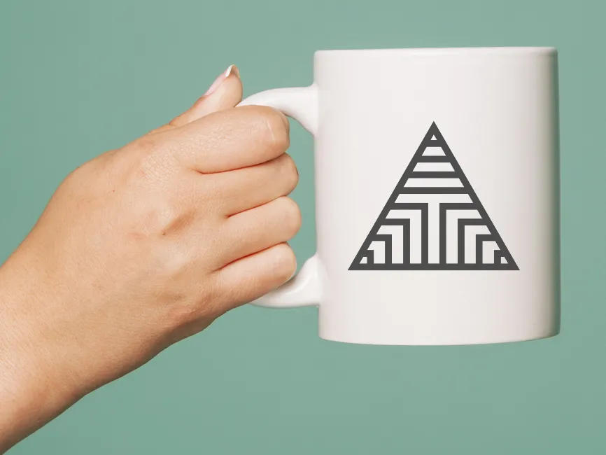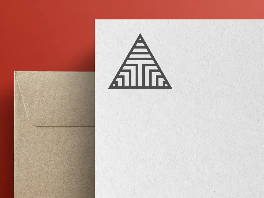 Additionally, the internal pattern forms a subtle representation of the letter "T" in the center, which could be an ideal design choice for brands or businesses with names starting with this letter. The horizontal lines towards the top enhance the sense of elevation, further emphasizing the shape’s pyramid-like characteristics.