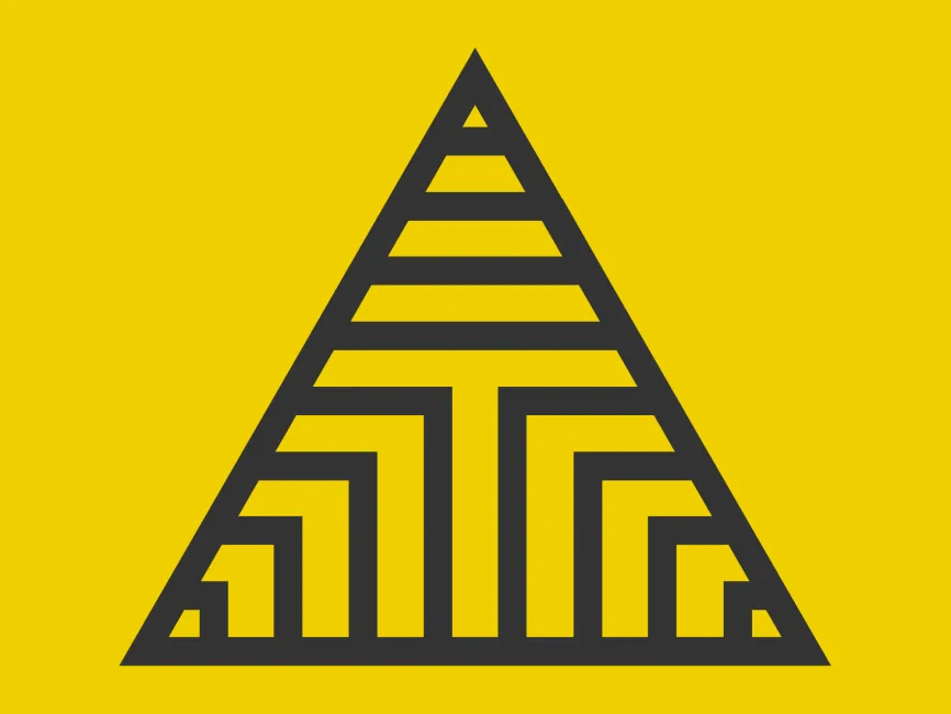 The primary structure of this shape is a pyramid or triangular formation, which symbolizes strength, stability, and progress. Within the triangular outline, there is an intricate maze-like pattern that resembles interconnected pathways or architectural elements. This feature adds a sense of complexity and depth, making it suitable for industries that emphasize structure, innovation, or strategy.