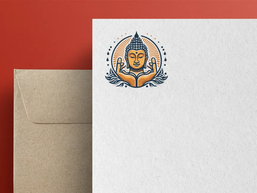 This design beautifully blends modern aesthetics with traditional Buddhist iconography — perfect for mindful branding across physical and digital spaces.