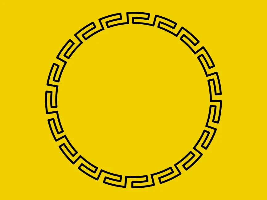This geometric vector shape features a circular border with a Greek key pattern, creating a timeless and sophisticated aesthetic. The repeating interlocked design symbolizes infinity, unity, and heritage, making it an excellent element for luxury branding, classical design, and ornamental compositions.