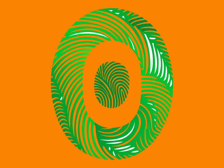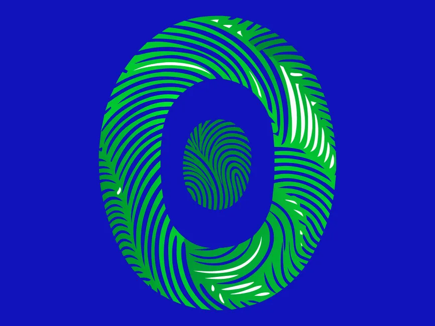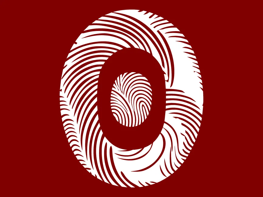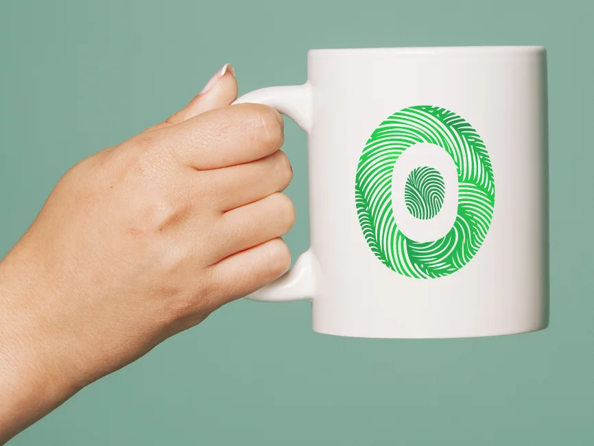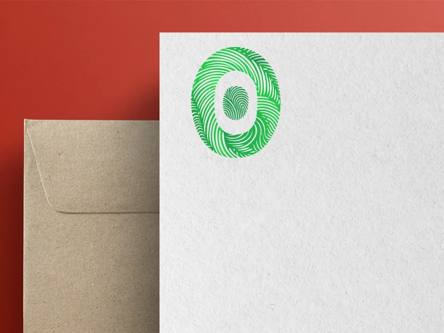 Fingerprint Patterns: The use of fingerprint patterns gives the logo a personal and human touch. The detailed swirls and loops within the letter "O" provide a distinctive and recognizable texture, making the logo visually engaging and memorable.