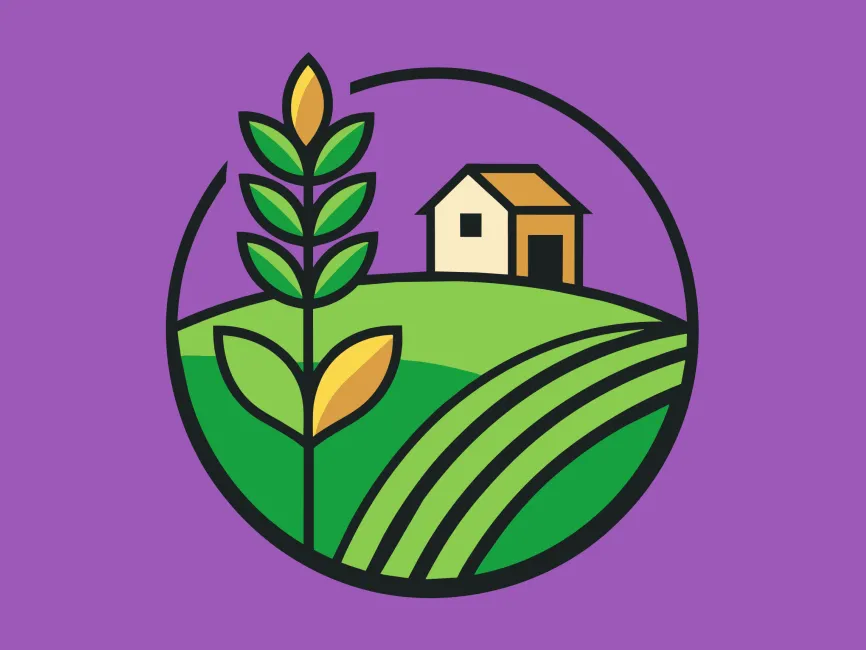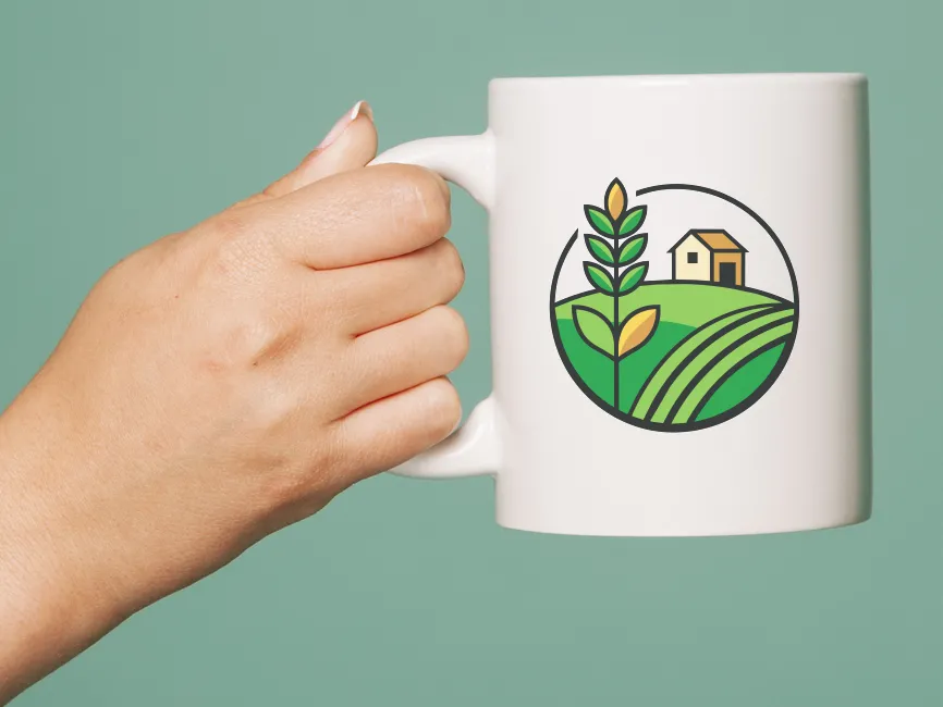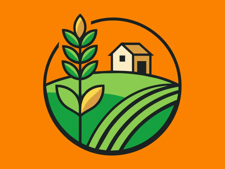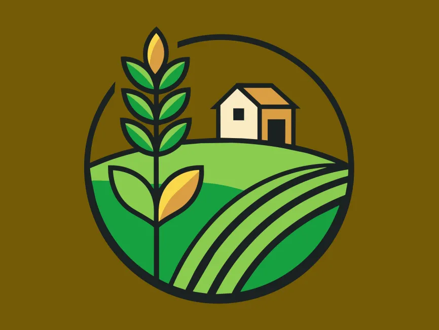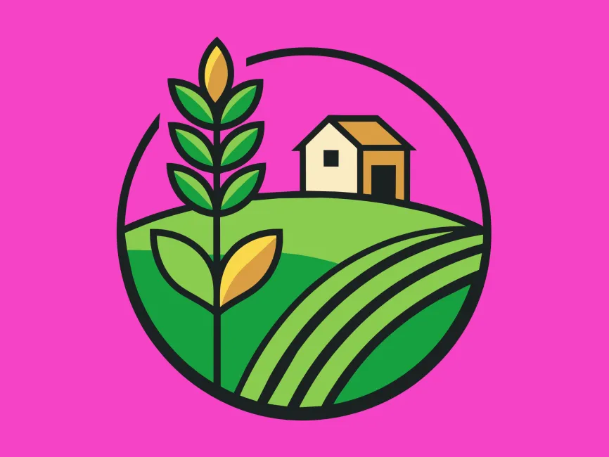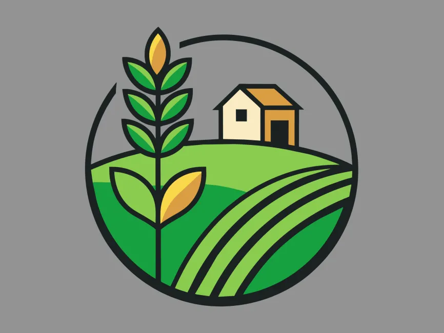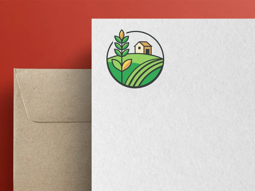 Download Green Plant Sprouting Organic Farm with House logotype template PDF vector and SVG logo Vector Format and PNG Transparent Format.