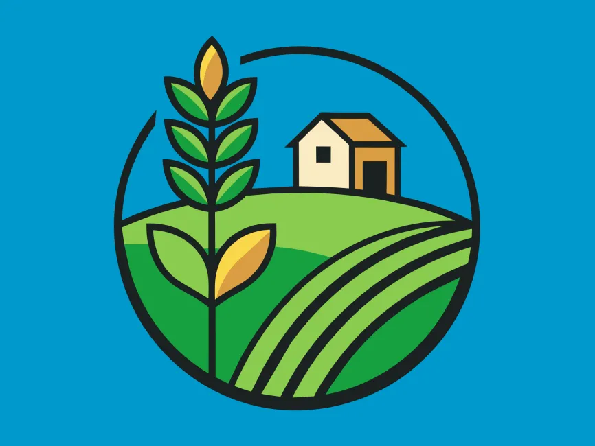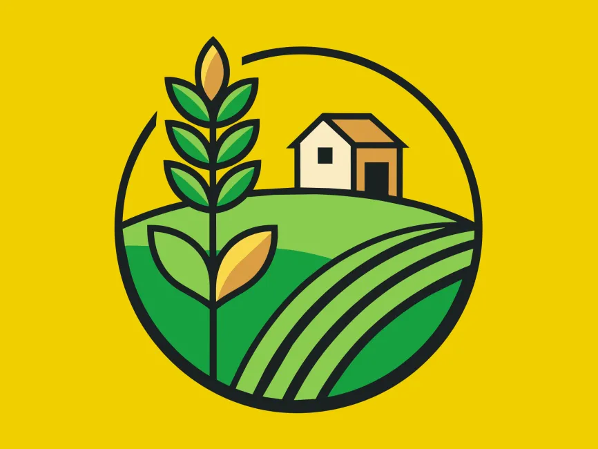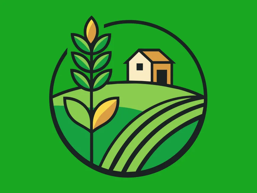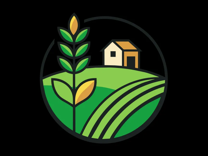 Green Plant Sprouting Organic Farm with House vector logo template SVG, PNG and PDF format free Download