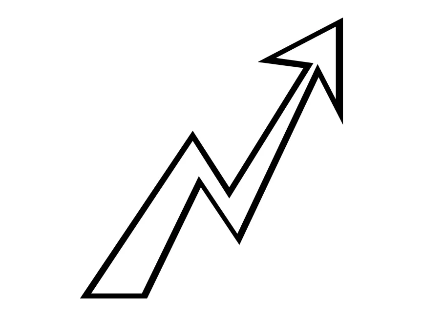 This Growth Arrow Icon features a zigzagging upward trend line that ends with a bold, pointed arrowhead. The design represents financial growth, success, upward movement, and performance improvement, making it a perfect icon for business, finance, and technology applications.