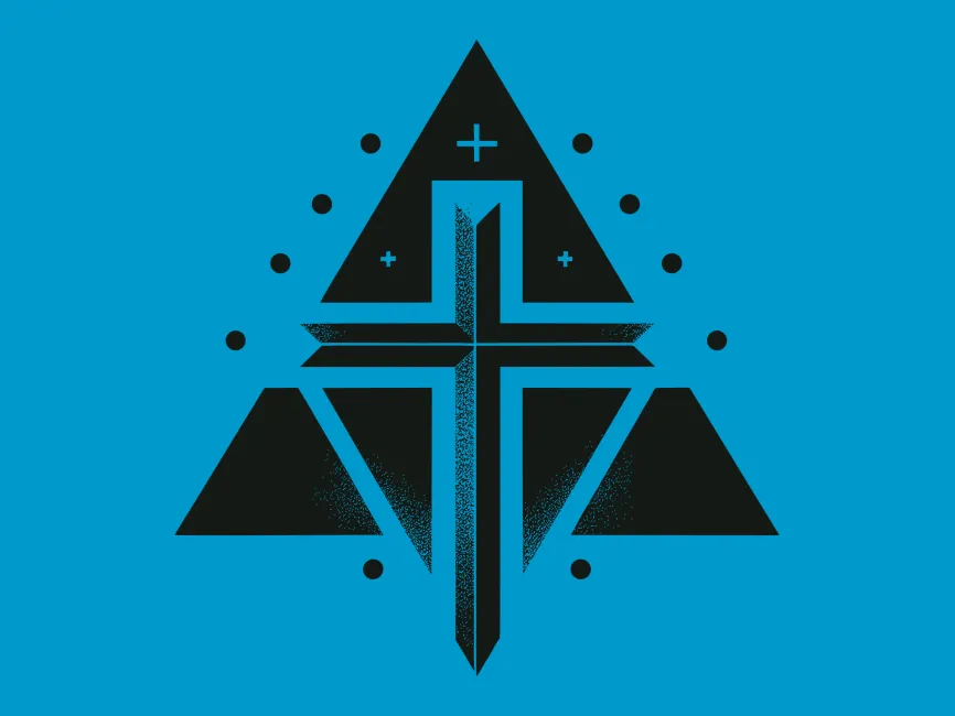 Grunge Black Christian Cross in Triangle Shape vector logo (SVG, Ai, EPS, PNG and PDF format) Free Download