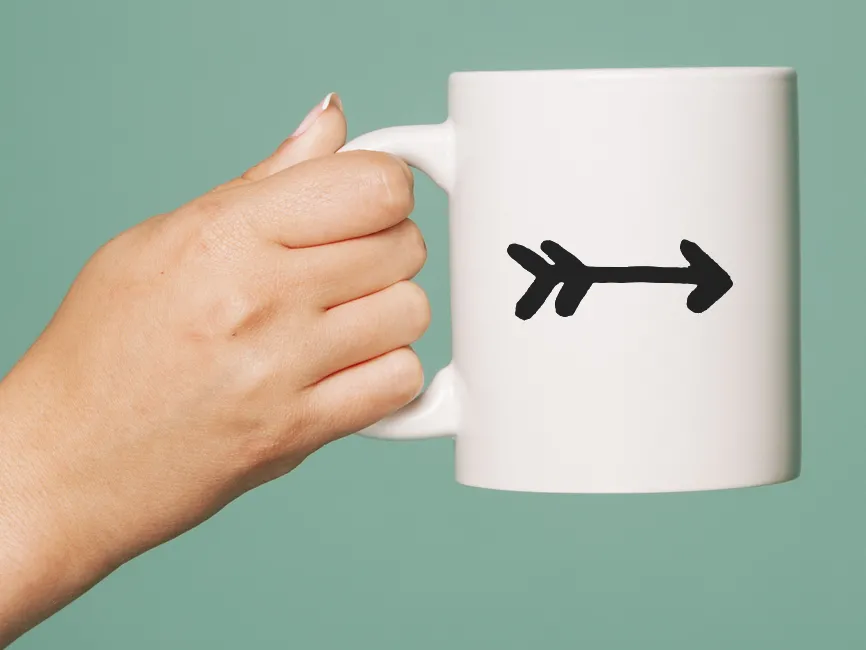 A right-pointing curved arrowhead, slightly exaggerated for stylistic emphasis.