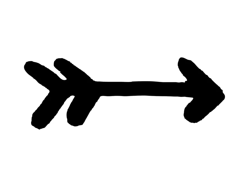Unlike geometrically rigid icons, this design offers a raw and authentic visual language, giving the impression of spontaneity and energy. The arrow begins with two expressive rear strokes pointing diagonally left, transitioning into a central horizontal body that leads into a slightly curved arrowhead.