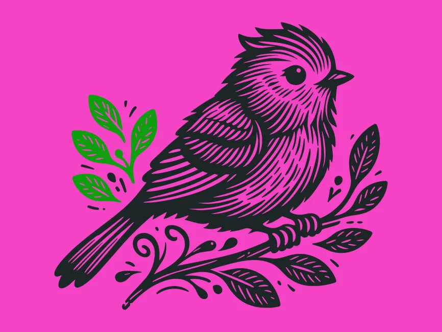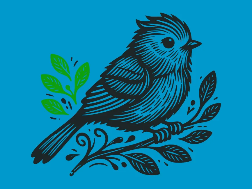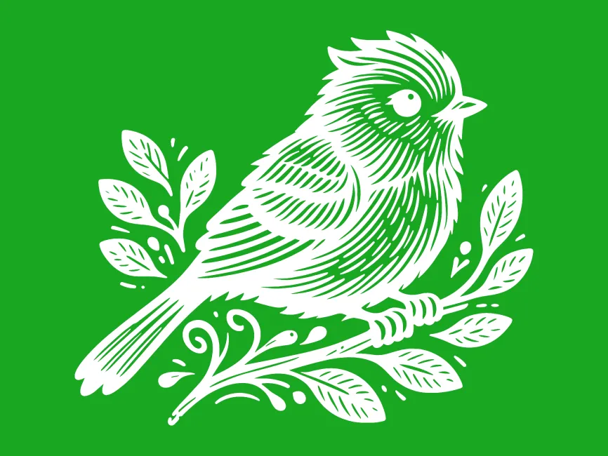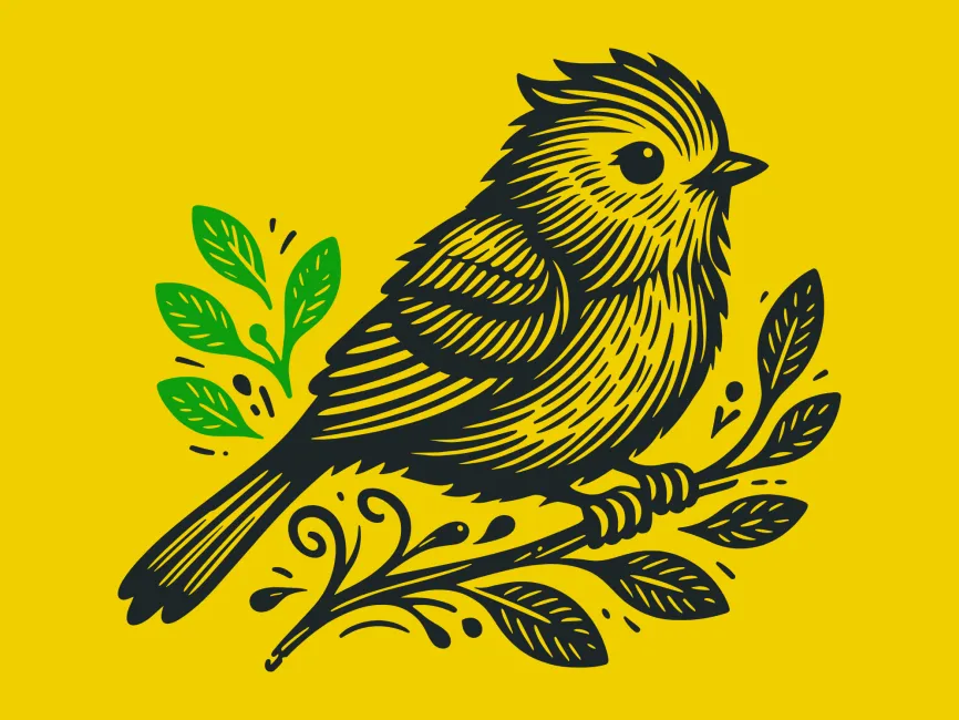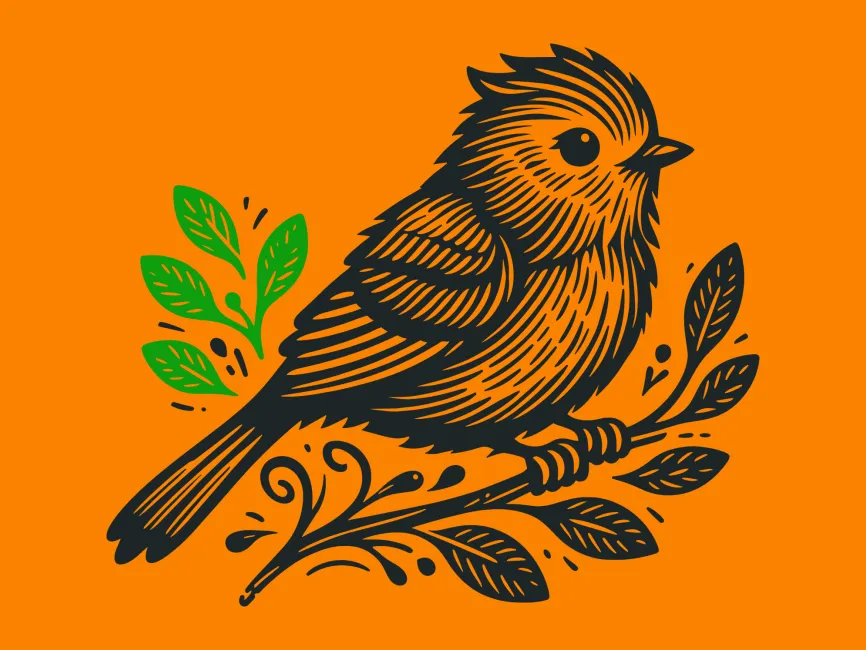Hand Drawn Sparrow Bird on Green Branch vector logo template SVG, Ai, EPS, PNG and PDF format free download
