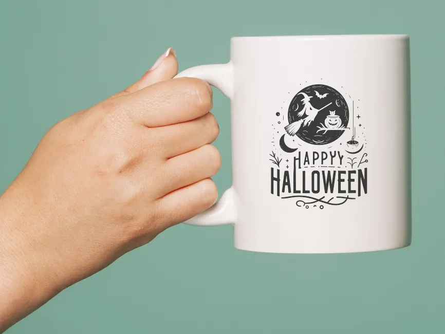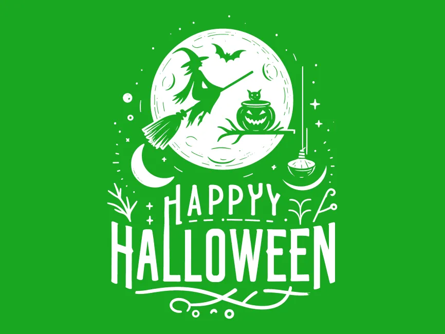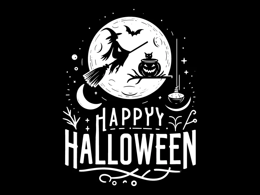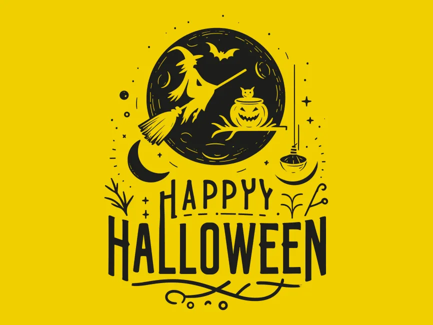 Happy Halloween Lettering with Witch Flying on a Broomstick vector (SVG, Ai, EPS, PNG and PDF format) Free Download