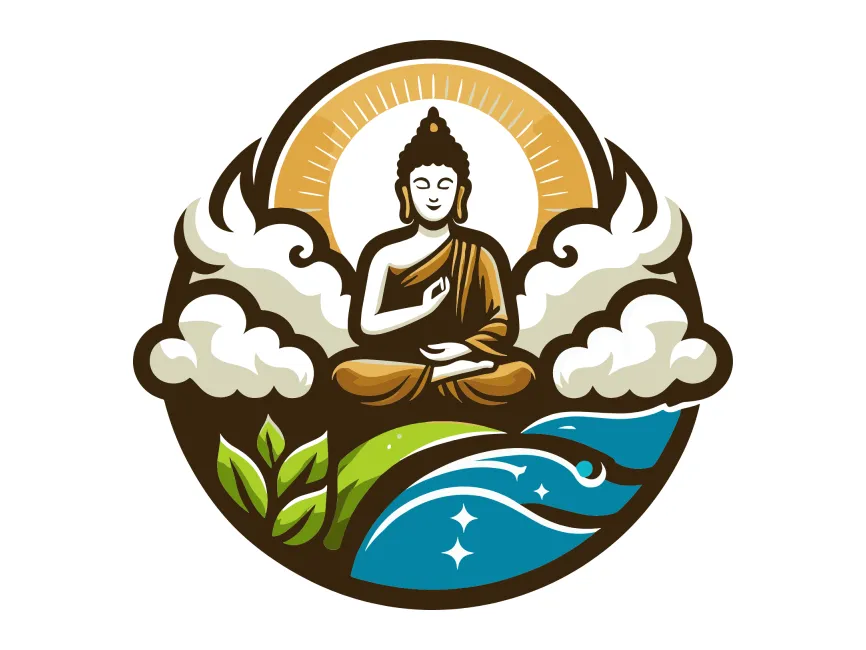 This vector design portrays a serene Buddha figure seated in meditation, surrounded by vibrant elements of nature—clouds, sunlight, plants, and flowing water. It captures a complete spiritual ecosystem, symbolizing harmony between human consciousness and the natural world. The circular frame reinforces the concept of wholeness and infinite balance, making it a compelling choice for eco-conscious brands and wellness-driven visual projects.