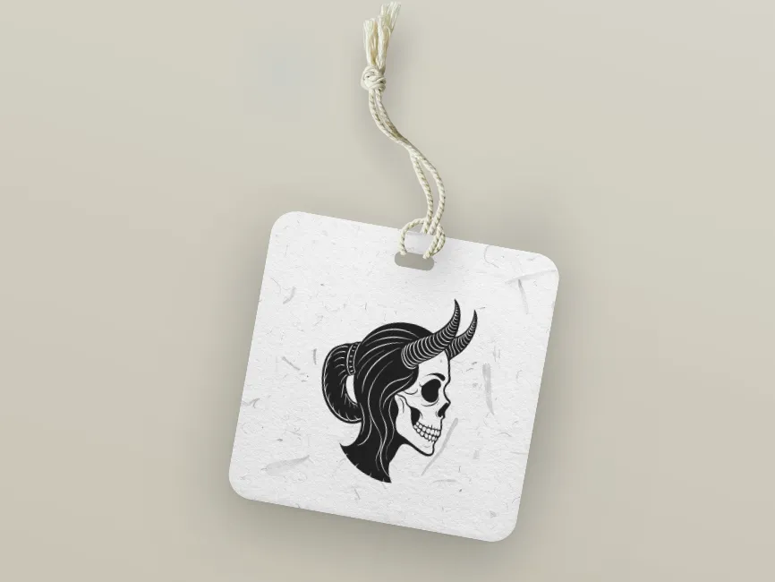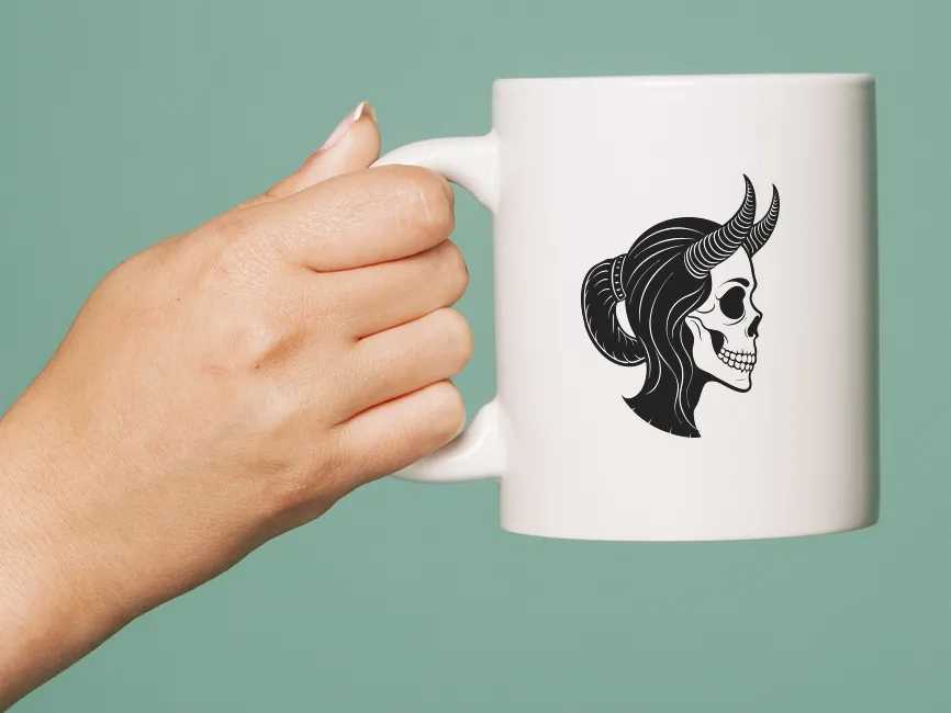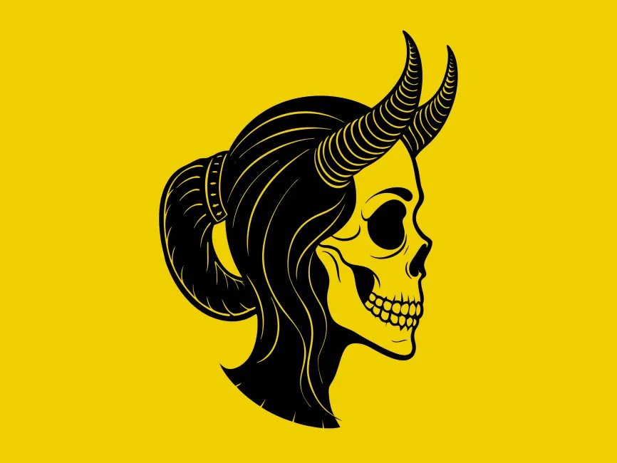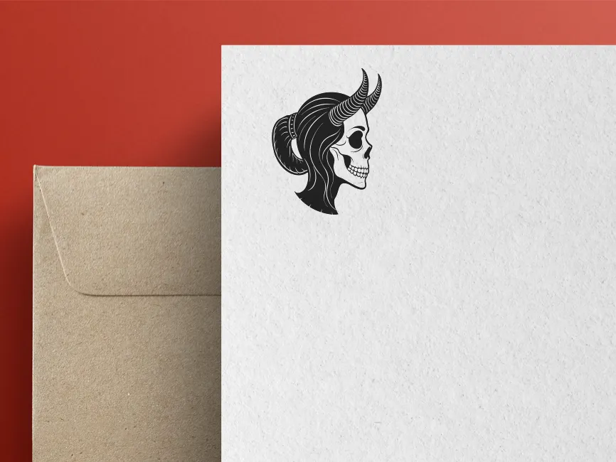 It’s fully editable in SVG and AI formats, allowing you to recolor elements to fit brand themes — from blood reds and metallic silvers to pastel goth or neon palettes. The hair, horns, and bones can each be styled individually for unique brand treatments.