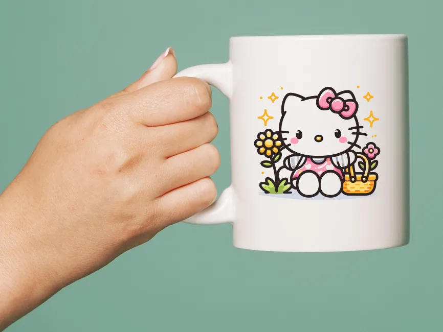 Hello Kitty with Flower vector design SVG, Ai, EPS, PNG and PDF format free download