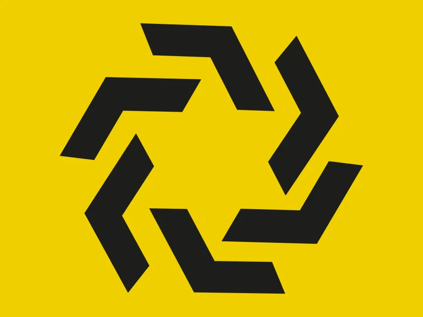 Hexagonal interlocking vector shape features a dynamic, rotational design with six bold, angular elements forming a continuous loop. Its symmetry and sharp edges create a modern and futuristic aesthetic, making it ideal for branding, technology, blockchain, and industrial design applications.