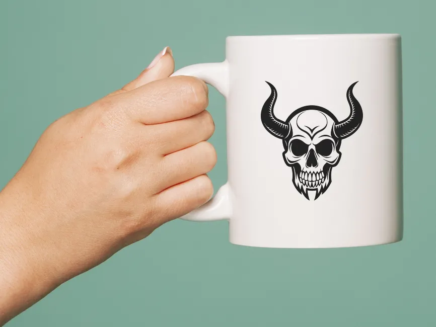 A unique feature of this design is the ornamental crown shape on the forehead, hinting at mythical or infernal origins — making this an excellent choice for fantasy, horror, or underground-themed branding. The combination of high contrast, minimal curves, and sharp points ensures that the emblem performs exceptionally well in any scale or context.