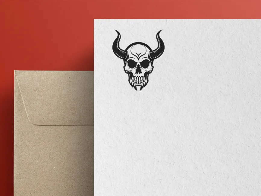 This logo does not represent any letter, and it is not a lettermark. Instead, it functions as a symbol logo, ideal for pairing with bold wordmarks or standalone use in visual-heavy branding. Its aesthetic pairs well with brand names beginning with H (Hell, Horns), S (Skull, Sin), D (Dark, Demon), or V (Void, Vile).